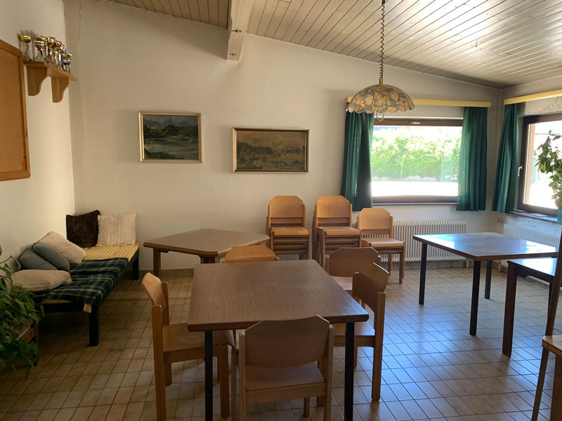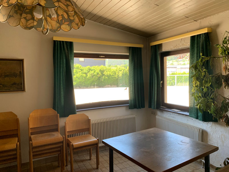 Der Sozial- bzw. Aufenthaltsraum ist wohnlich ausgestattet und bietet für die wichtige Pausenzeit viel Platz und gemütliche Atmosphäre zum Entspannen. Eine helle, zum Eingangsbereich abfallende Holzdecke, große Fenster, ein pflegeleichter braun-beiger Bodenbelag aus Fliesen und zwei große Heizkörper sorgen dafür, dass sich Ihre Mitarbeiter wohl fühlen.
